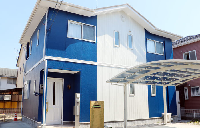 外壁塗装は色使いを変えるだけで印象が変わります。濃い色をアクセントに加えることで、コントラストの違いを楽しめるでしょう。また、単色で仕上げるとモダンな印象になり、シンメトリーのデザインがよければツートーンカラーもおすすめです。